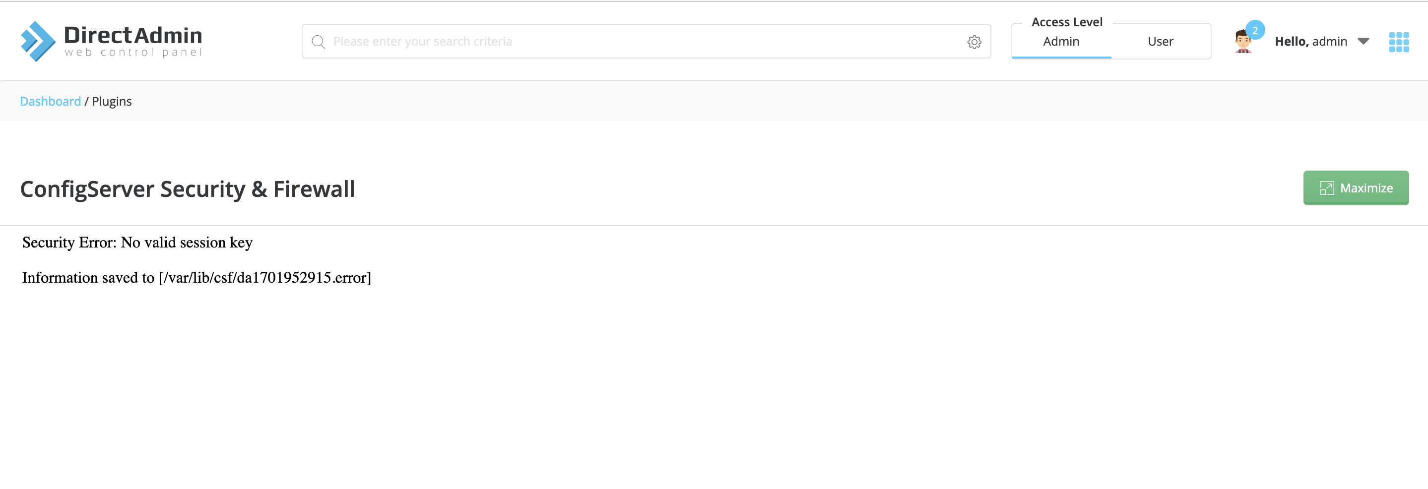 [DirectAdmin] Hướng dẫn khắc phục lỗi Security Error: No valid session key trên CSF