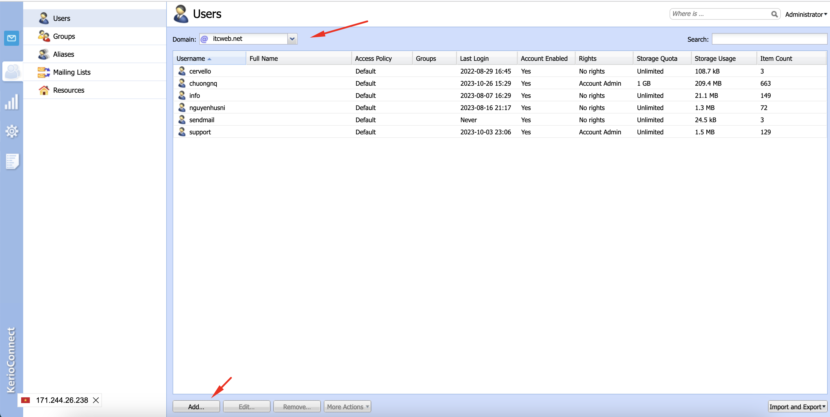 [Kerio Connect] Hướng dẫn thêm user email trên webmail admin kerio