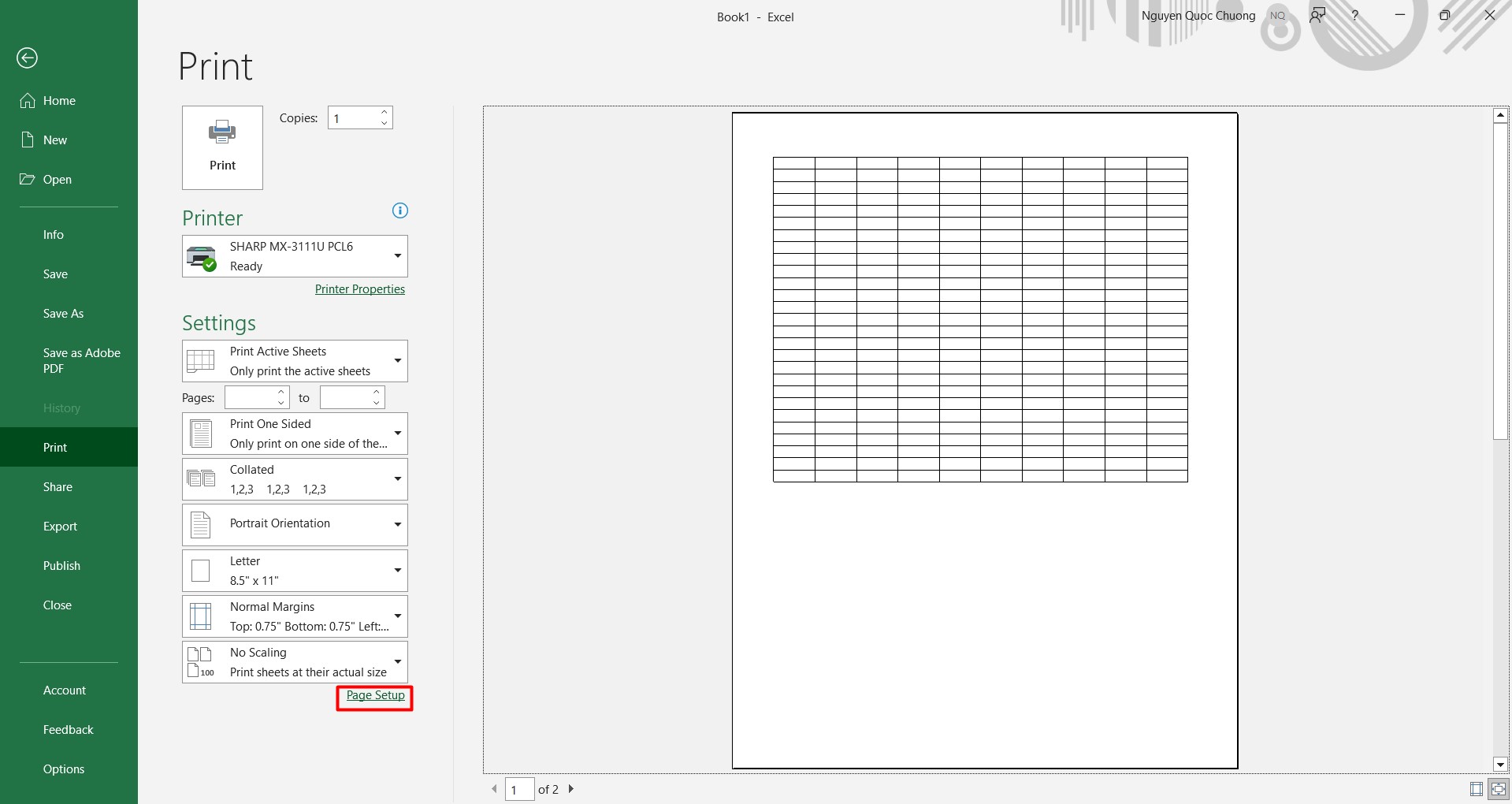 1. Khi các bạn chọn Print chọn Page Setup