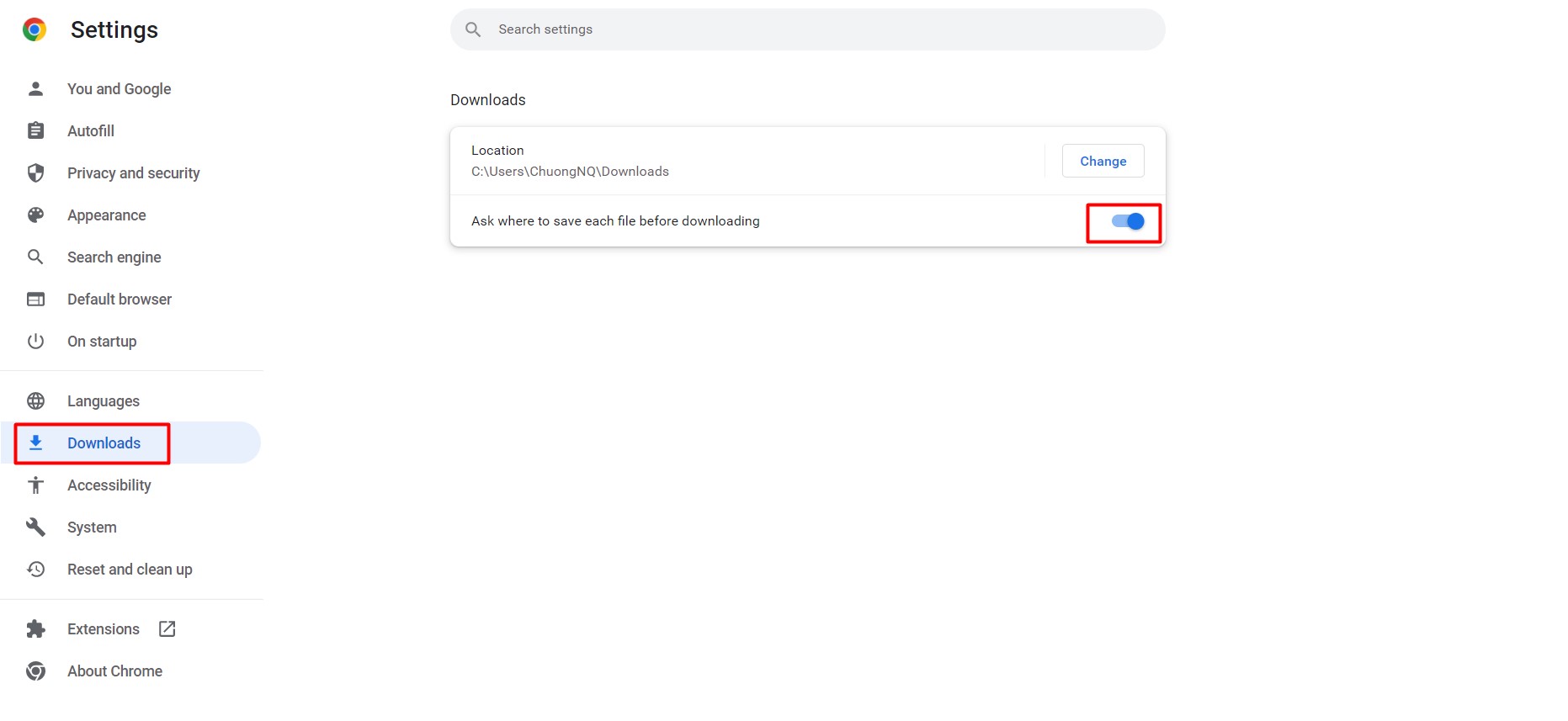 Hướng dẫn bật tính năng hỏi vị trí lưu file khi download trên chrome