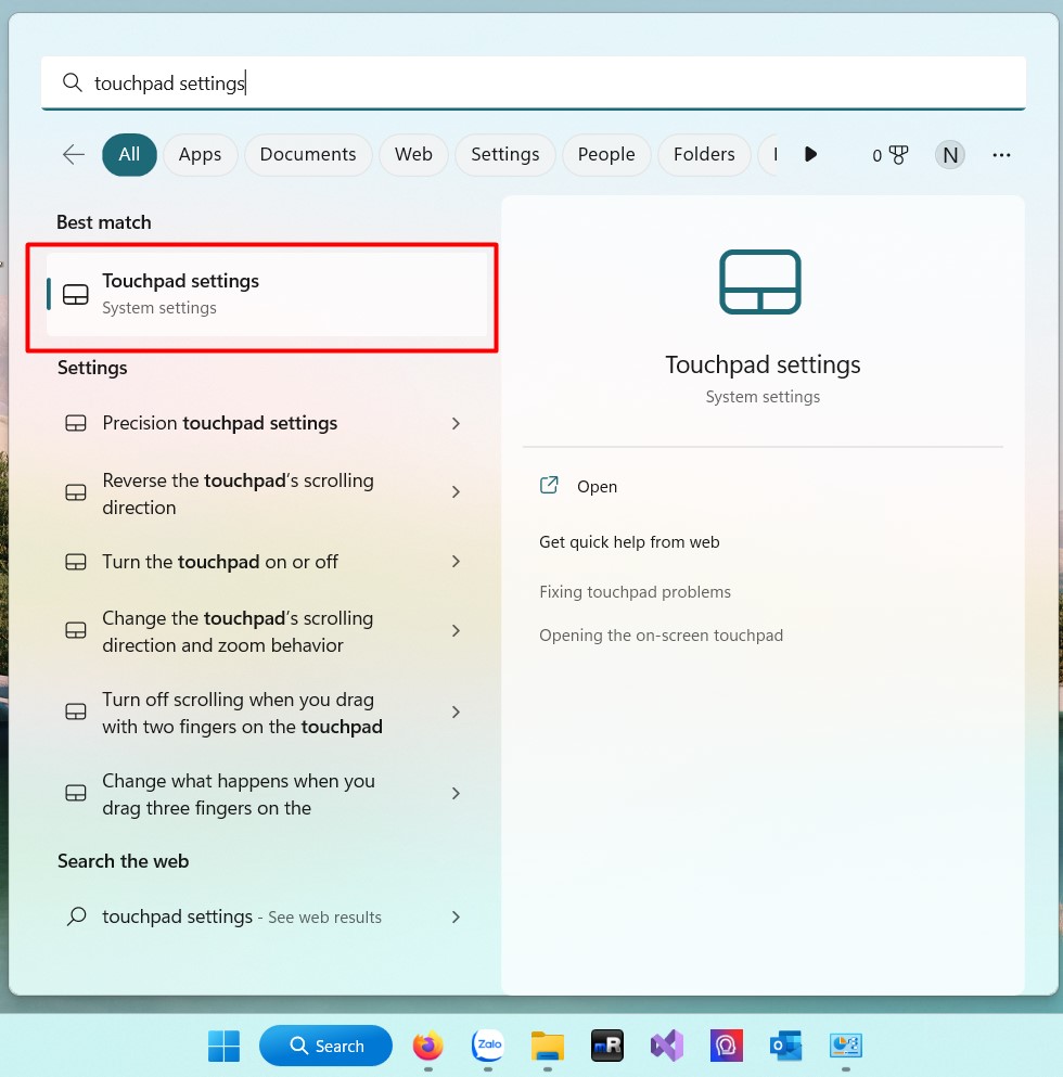 1. Vào start > gõ Touchpad settings