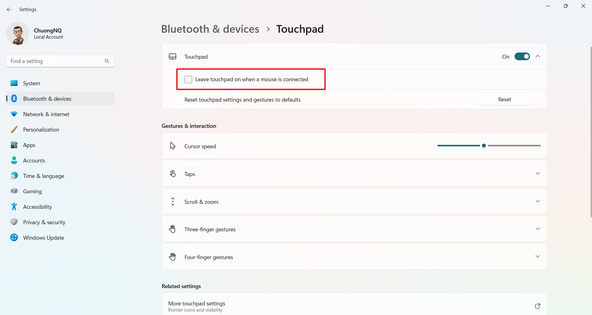 Hướng dẫn tắt mở touchpad khi gắn chuột vào laptop trên windows 11