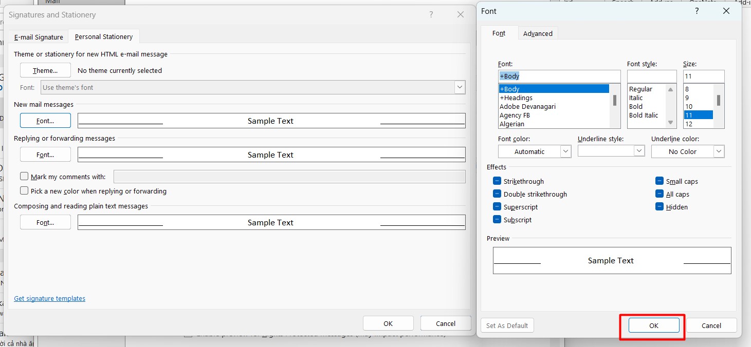 Hướng dẫn set font chữ và màu sắc mặc định khi soạn email trên outlook
