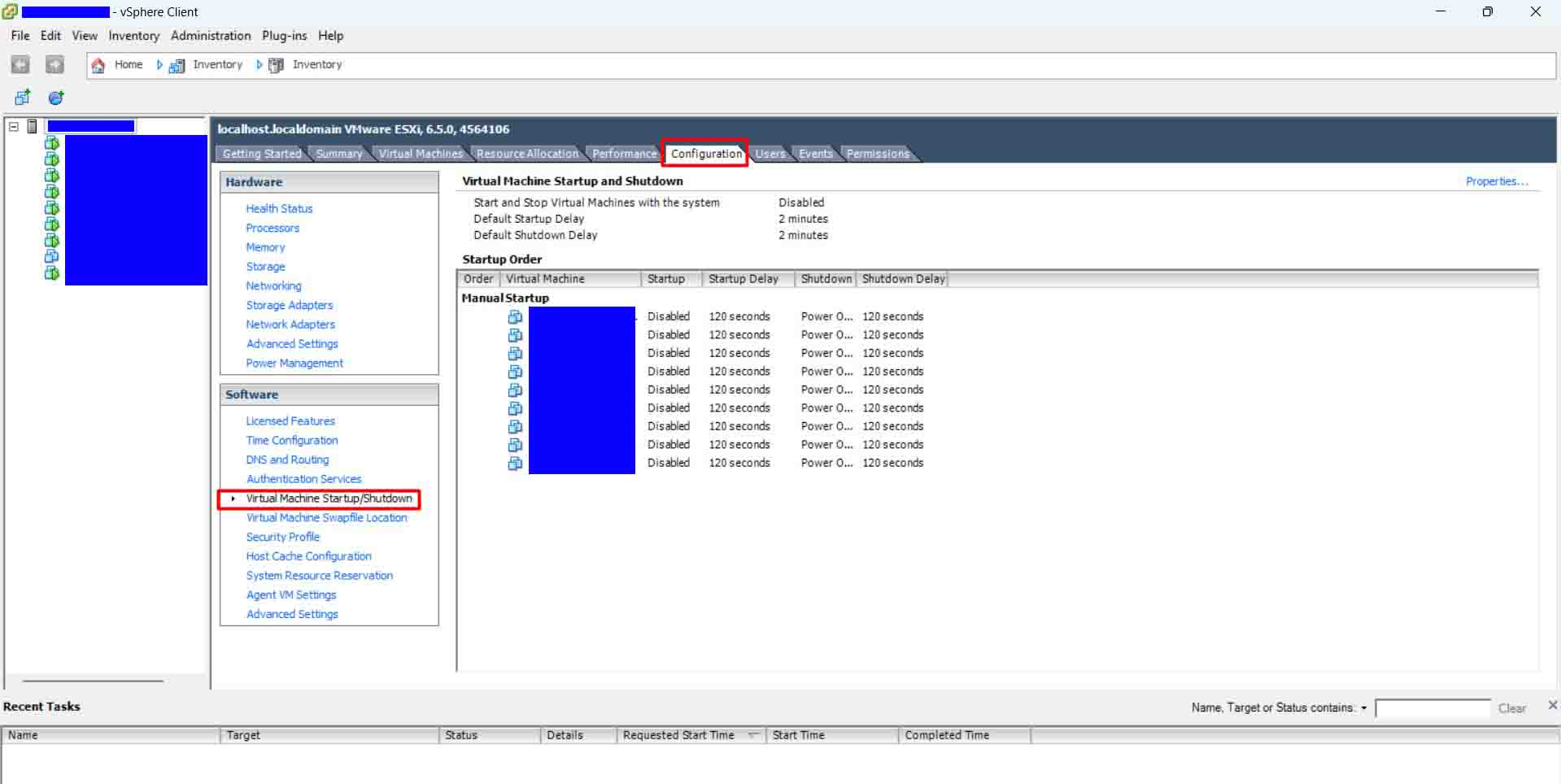 2. Chọn Configuration > Virtual Machine Startup/Shutdown