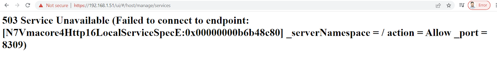 [VMWARE] Khắc phục lỗi 503 Service Unavailable Failed to connect to endpoint